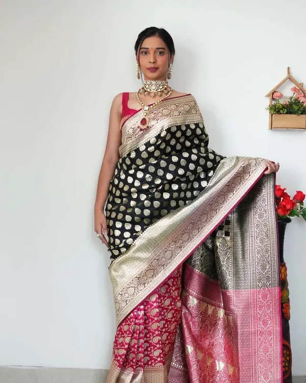 Black Color Ready To Wear New Collection Soft Banarasi Silk Saree With Gold..More